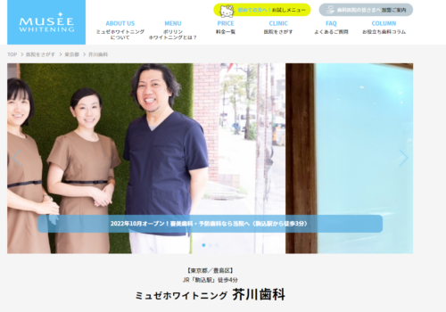参照元:ミュゼホワイトニング芥川歯科 公式HP(https://musee-whitening.com/clinic/tokyo/20968)